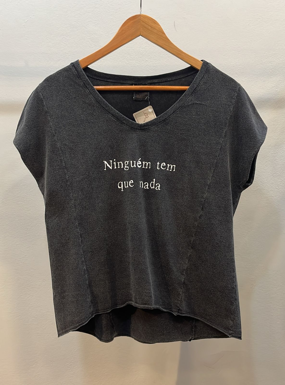 Blusa Feminina Silk Ninguém Tem que Nada Preto Marmo