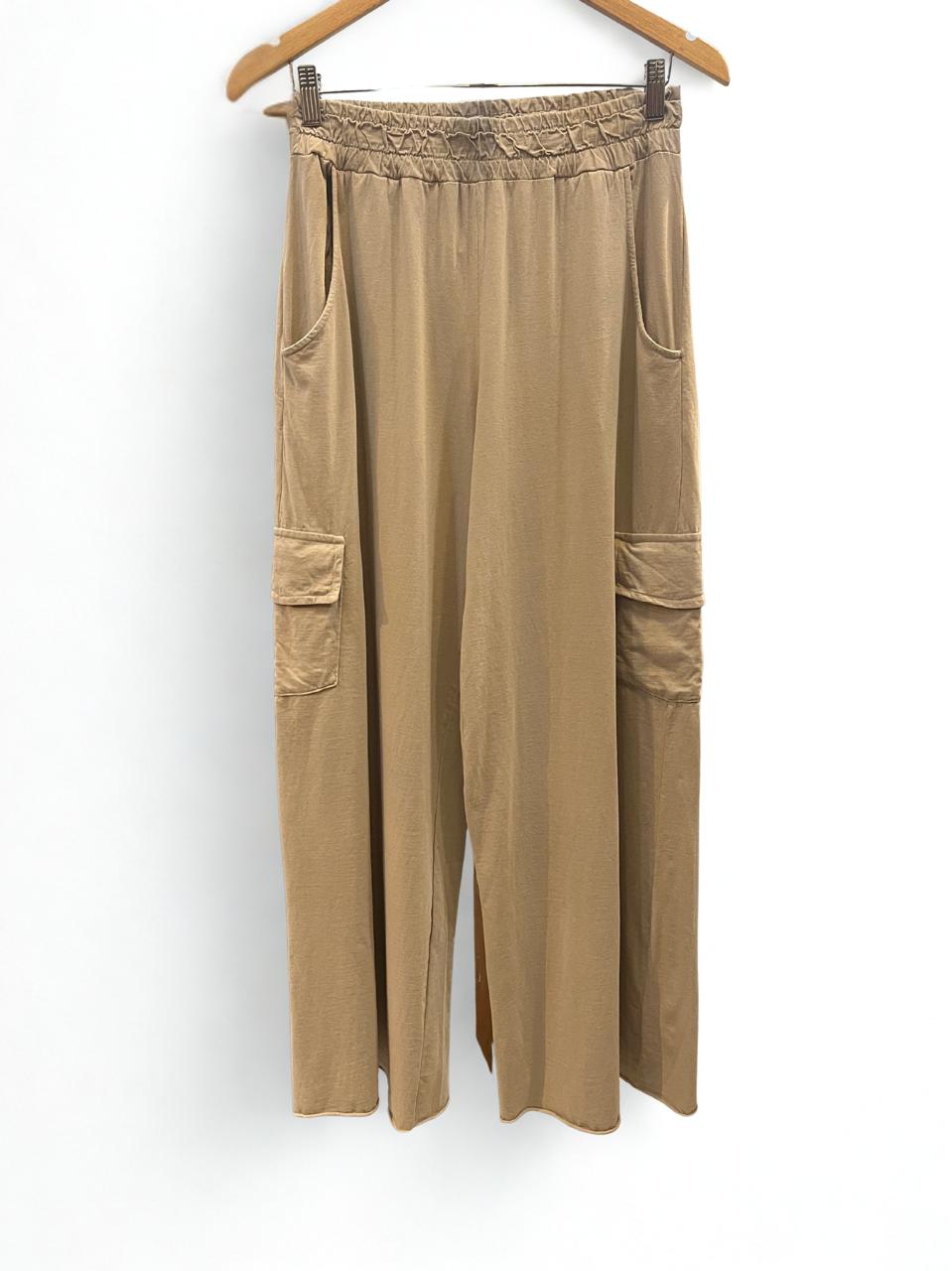 Calça Pantalona com max bolsos. Malha 100% algodão.