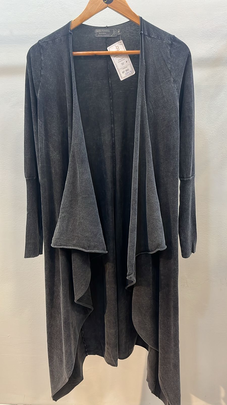 Cardigan Longo com pontas. Malha 100% algodão.